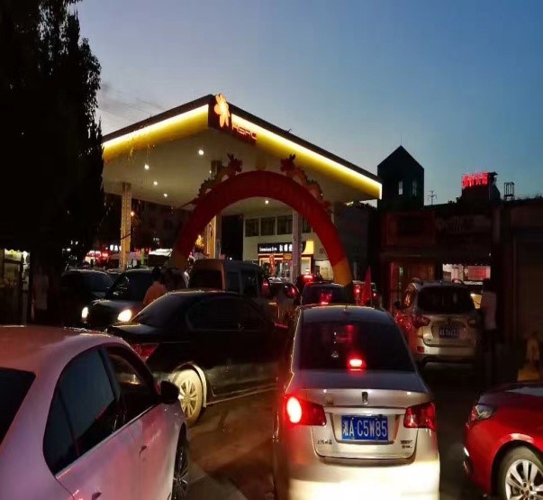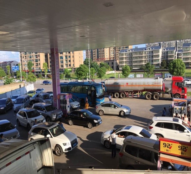 7月18日,藍(lán)天如洗,加油站內(nèi)彩旗飄飄,從上午7:00開(kāi)始,各加油站便進(jìn)入了忙碌不停的狀態(tài),一整天車(chē)輛川流不息,絡(luò)繹不絕。